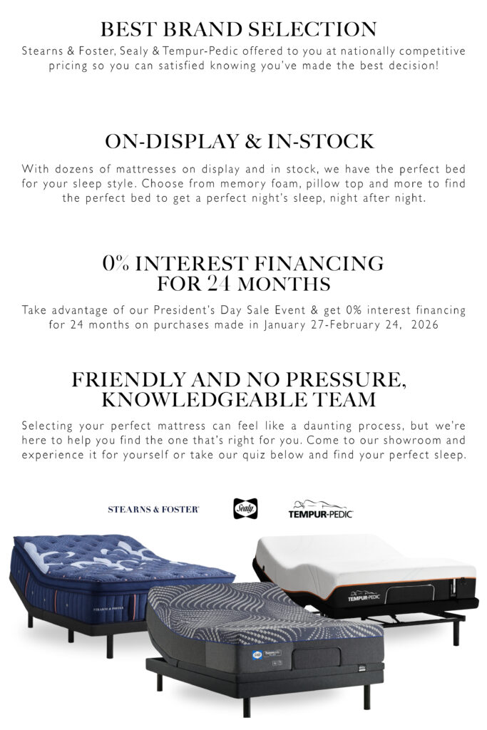 Visit us today to explore our selection and find the mattress that fits your sleep needs best. Don’t miss your chance to save before the sale wraps up.